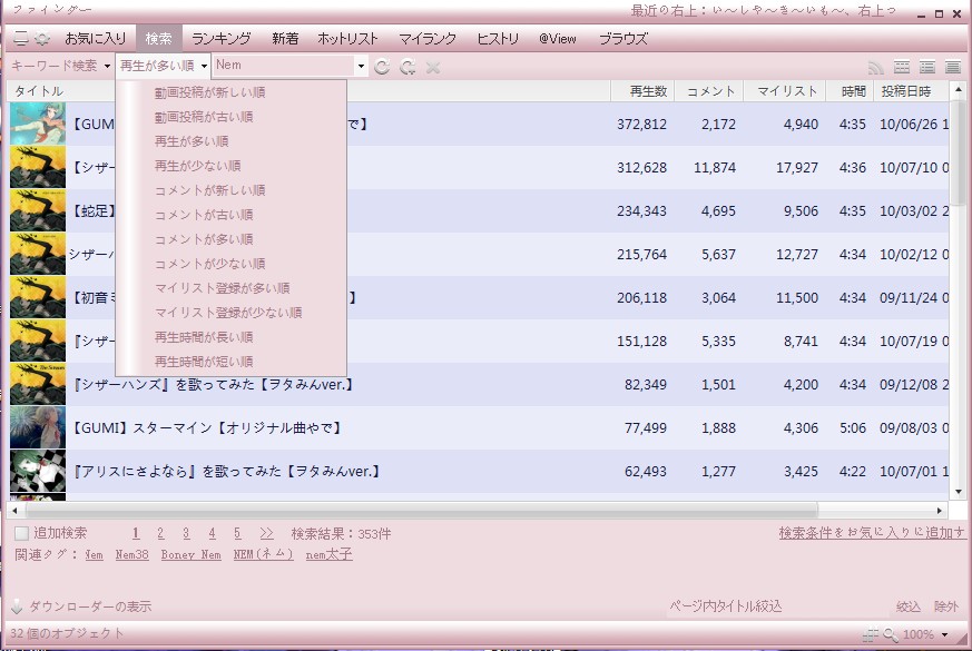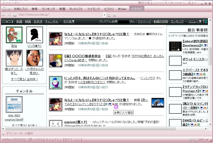 上面的功能列表从左到右分別是「我的最爱」「检索」「ranking」「新影片」「hot list」「my rank」「我的影片观看记录」「@view」以及「browser」